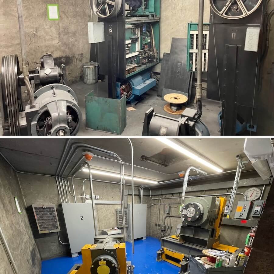 Modernizasyon projesi, mevcut fiziki koşullara göre tasarlanır. Genellikle kuyu ve makine dairesi yapısal değişiklik gerektirmez. Ancak yeni sistemin güç ihtiyacı, mevcut kontrol sistemi ve güvenlik standartlarına uyum için elektrik tesisatı, aydınlatma veya yangın algılama sistemlerinde güncellemeler gerekebilir. Yeni regülasyonlara uyum için kuyu içi emniyet donanımları (ör. kuyu altı ve üstü sınır şalterleri, kapı kilitleme sistemleri) değiştirilebilir.